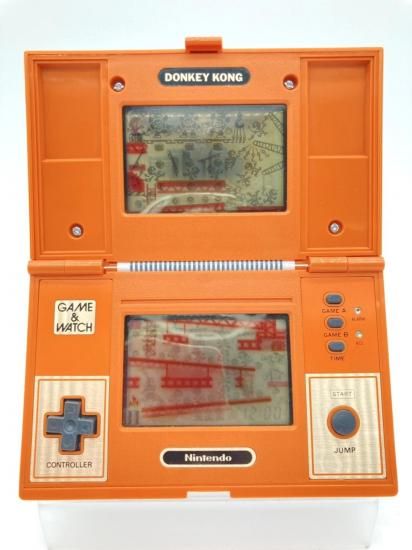 当時の人気アーケードゲーム『ドンキーコング』を手のひらサイズで再現したモデルで、
